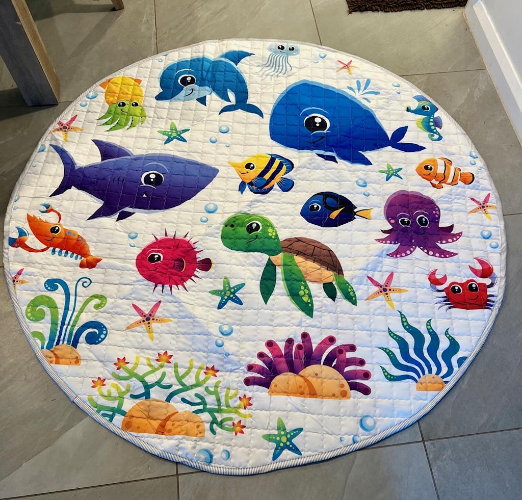 I love this baby mat! The fish all look so friendly and happy. The colours are bright and the design is beautiful. I look forward to making many fun memories on it with my new little one.