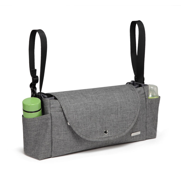 Kayla Pram Caddy is an easy way to keep all baby essentials handy and organised when out and about. Made from durable and water resistant Polyester, it is sure to impress you with its spacious interior and deep side pockets. With its universal fit, you can fit it on any pram with its durable and sturdy buckles.
